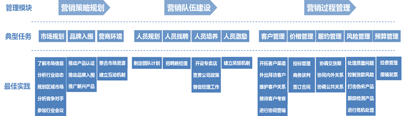 后備課程體系:以營銷管理者崗位為原型,梳理典型任務,明確最佳實踐,設計成套課程體系。